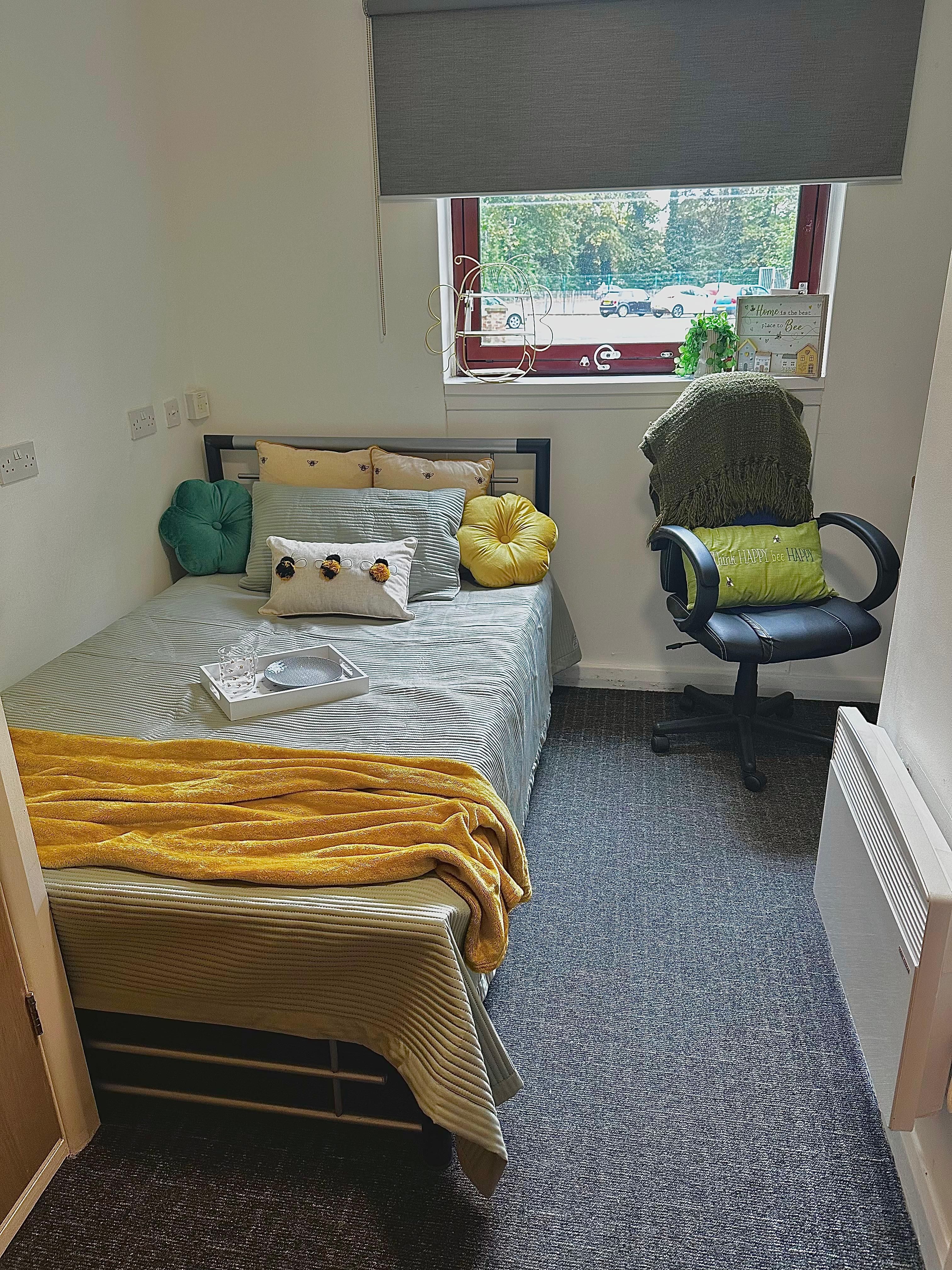 Our Gold ensuites come with lovely views of the building's surroundings and we find these are perfect for students wanting to socialise whilst having everything they need for their studies within their bedroom. You will join a warm and welcoming community when moving here with tenants that will support you and be there for all your university memories. We know it can be hard moving away from home to study, so we have an accommodation manager on site who can be there for you for a friendly chat and to sort out any issues you may have with your room or flat. We find our team's response to any maintenance issues to be the best rated with reports often being dealt with within a 24 hour period.
