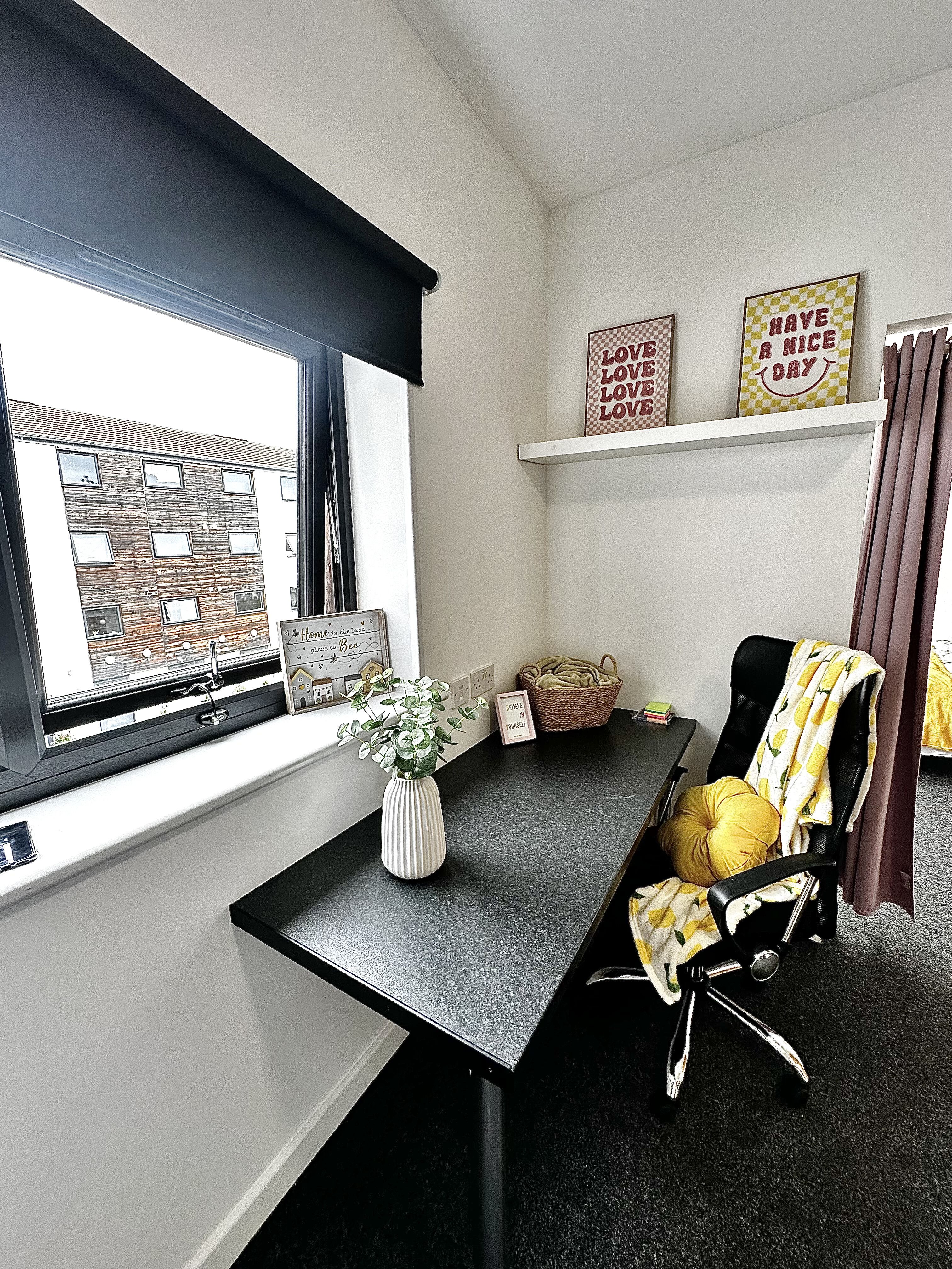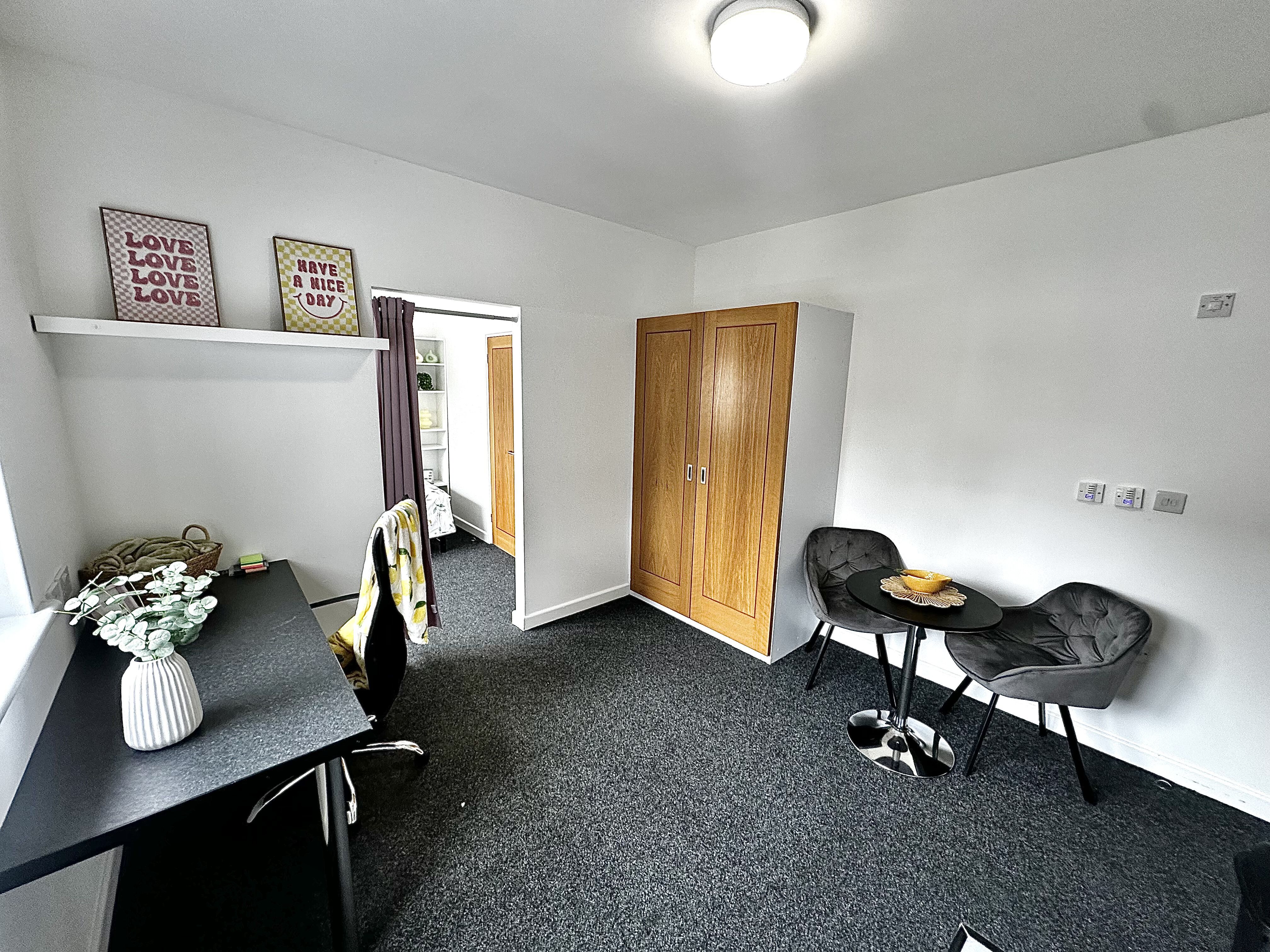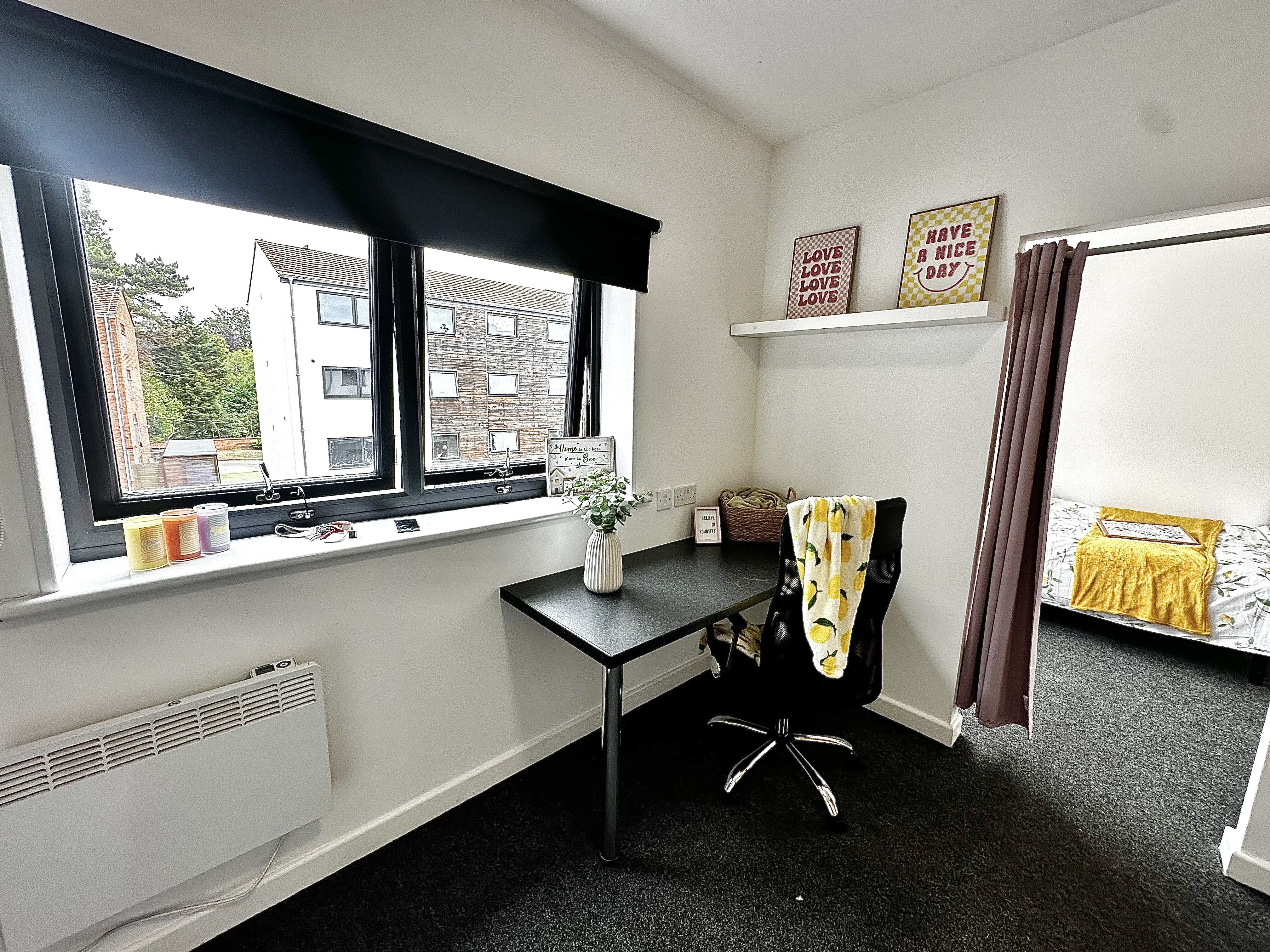 The huge wardrobe which comes with the room will offer great storage for all your belongings along with a chest of draws and under bed storage areas too. The huge desk area will offer you a great study space so you can focus and get all your work done without having to leave your room. We find this room is perfect for the tenant looking for maximum space with Loughborough student accommodation.