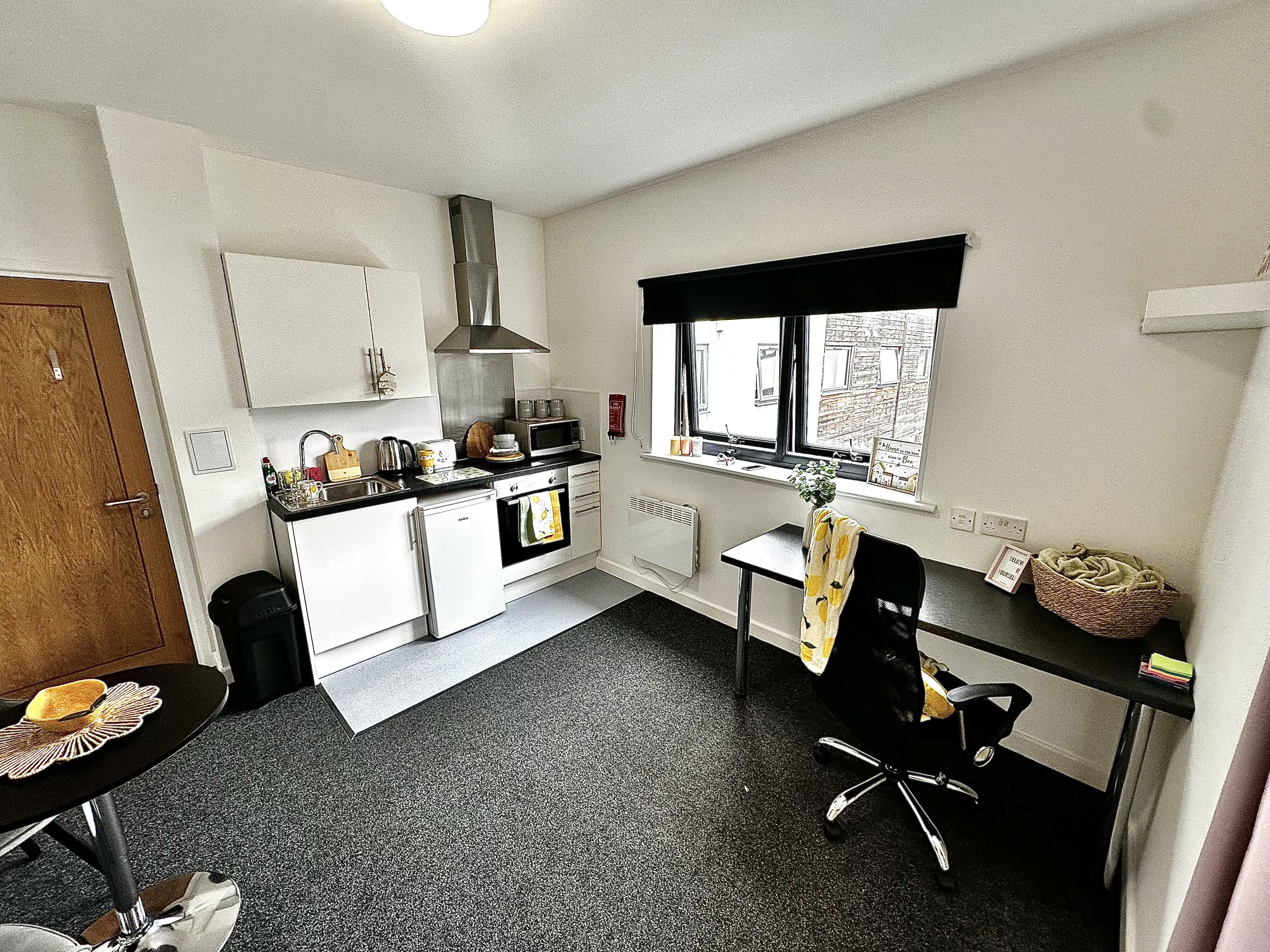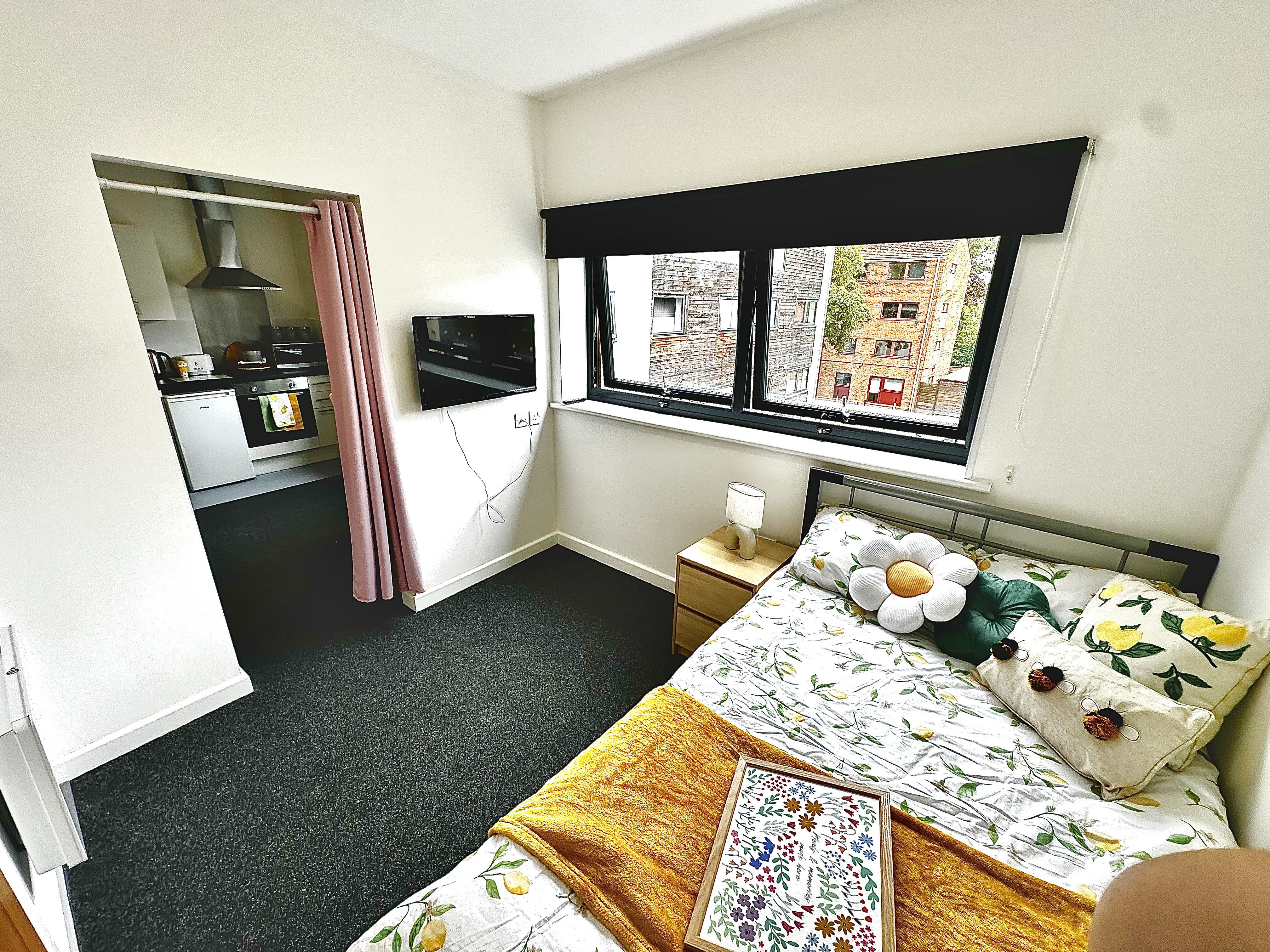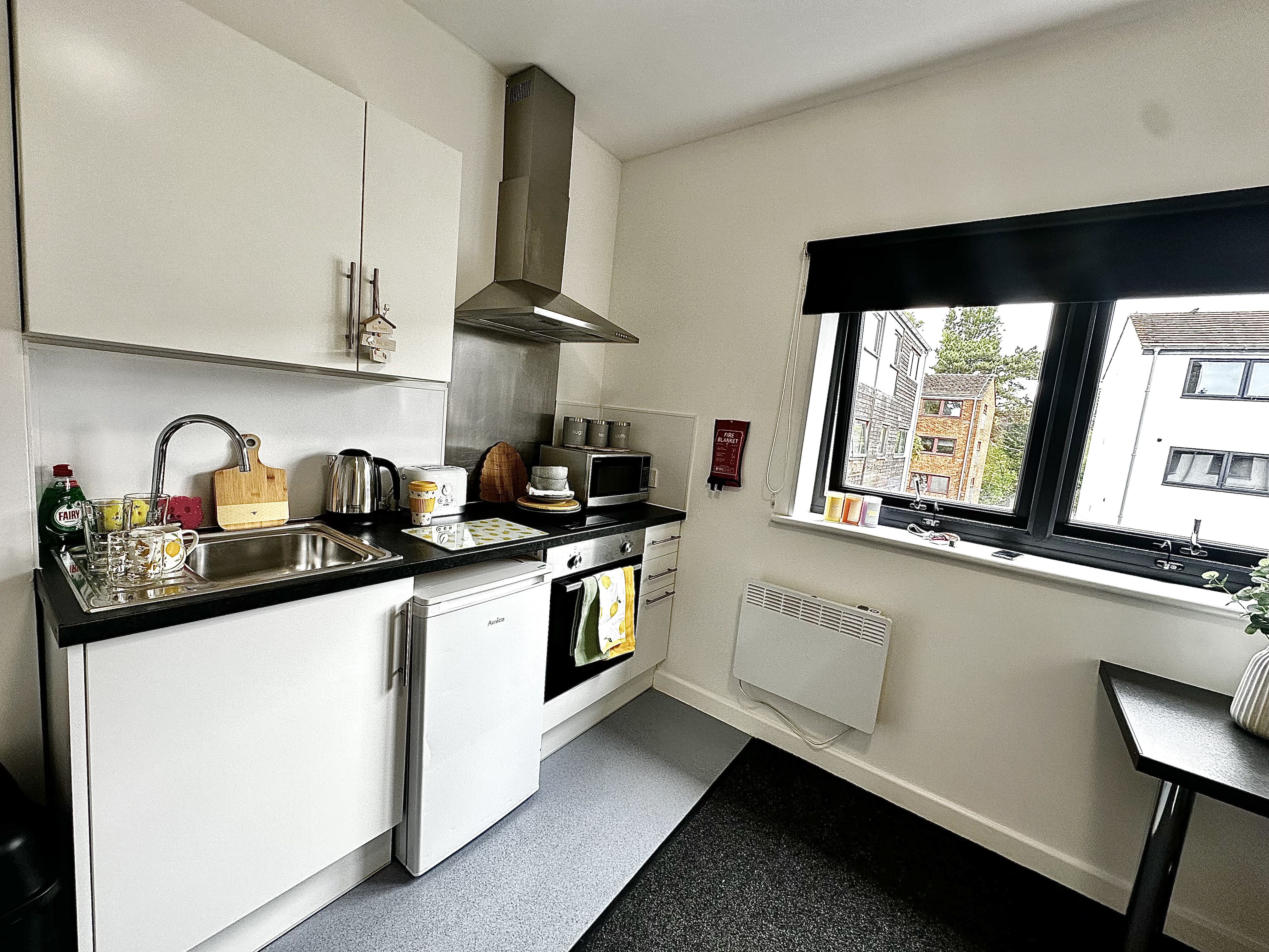 This room comes with all bills included, free WIFI, a free onsite gym, access to an outdoor heated pool and a common room where you can relax and meet new friends. Our one bed flat offers a superb space so you can host group dinner parties knowing there's plenty of room for everyone. The large kitchen area includes everything you could want: a hob, an oven, a fridge, freezer, kettle, toaster and microwave. So you can move in without needing to worry about spending any more money on university essentials.